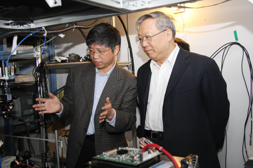 4月11日,中科院院长路甬祥在湖北省副省长郭生练,中科院副秘书长、规划战略局局长潘教峰的陪同下来到武汉分院调研。