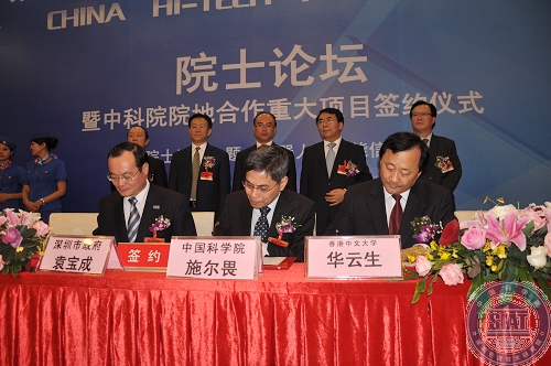 中科院常务副院长白春礼、副院长施尔畏,新疆维吾尔自治区政府副主席靳诺,深圳市市长许勤、副市长袁宝成,香港中文大学常务副校长华云声等共同见证签约,市政府秘书长李平主持签约仪式。签约仪式结束后,中科院还举行了机器人与智能信息系统院士论坛。