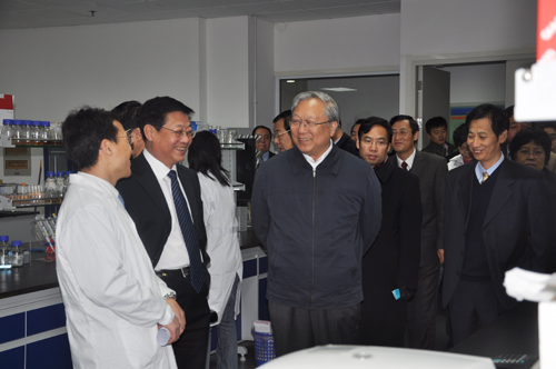 在天津工业生物技术研究所,路甬祥一行参观了系统生物学、合成生物学等领域实验室,听取了研究所筹建工作进展汇报,并与科研和管理骨干进行了座谈。路甬祥充分肯定了天津工业生物技术研究所筹建工作取得的成绩,对天津市委、市政府高效务实的工作作风以及给予新建所的大力支持表示感谢。他指出,中科院筹建天津工业生物技术研究所,选择了正确的时机、正确的地点和正确的领域方向,符合国家和天津市发展的需求。研究所按照“学科领域、应用面向、技术支撑体系”三维结构布局的同时,坚持“边筹建、边科研、边出成果”的原则,筹建工作取得了阶段性进展。