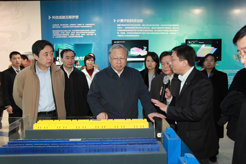 在中科天津电子信息技术产业园,路甬祥一行了解了园区建设情况,参观了曙光天津产业基地、天津中科遥感信息技术有限公司和天津中科蓝鲸信息技术有限公司。曙光天津产业基地自2006年落成并投入使用以来,累计实现销售收入超过30亿元,2010年5月二期工程竣工并投入使用,全部投产后将成为亚洲最大的高性能计算机生产基地。天津中科遥感信息技术有限公司于2007年成立,致力于数字城市及数字城镇技术成果的产品化以及遥感高级数据产品加工的规模化生产,2010年销售收入将突破2000万元。天津中科蓝鲸信息技术有限公司于2007年成立,致力于研发、生产和销售自有品牌的网络存储系统,2010年销售收入将达4000万元。