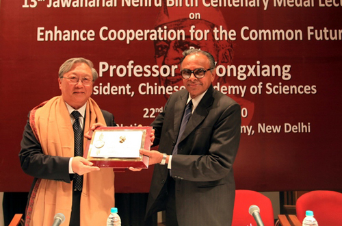 路甬祥接受印度国家科学院尼赫鲁百年诞辰奖