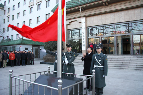 12月31日上午,中国科学院举行迎新年升国旗仪式。伴随着雄壮的义勇军进行曲,中国科学院常务副院长、党组副书记白春礼升起鲜艳的五星红旗。中国科学院副院长李静海、詹文龙、丁仲礼,党组副书记方新,秘书长邓麦村,副秘书长谭铁牛、潘教峰和中科院机关全体职工参加了升旗仪式。升旗仪式由监察审计局局长李定主持。