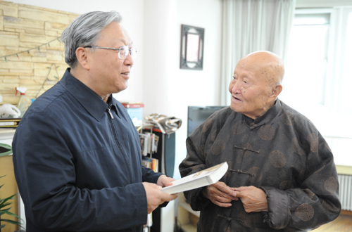 看到数学家吴文俊院士身体很好,路甬祥高兴地说:“您还在不断思考,并且不断为培养青年人才做贡献,我们都非常钦佩。希望在老一辈的带领下,数学院的中青年都有新发展。”吴文俊表示感谢,并说:“老年的概念跟着时代在变,现在一百岁都不算老啊。”