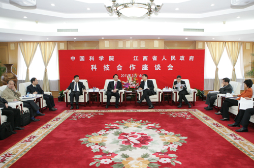 座谈会开始前,中国科学院南京分院有关负责人代表院省双方汇报了院省合作工作有关情况。据统计,“十一五”期间,中国科学院科技成果在江西省转化产生的经济效益和社会效益持续增加。江西省副省长朱虹、省政府副秘书长蔡玉峰,中国科学院秘书长邓麦村以及院、省各有关部门负责同志出席了会议。