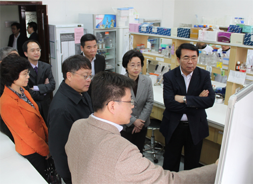 上海药物所海科路园区是中科院上海浦东科技园生物医药基地中第一个开工、第一个入驻的基建项目,是国家“重大新药创制”重大专项的重要工作平台。白春礼一行听取了上海药物所所长丁健关于园区整体情况的介绍,重点考察了安全性评价研究中心和实验动物中心。药物安全性评价联合实验室参照国际GLP标准进行建设,目前正在积极准备欧盟OECD的GLP认证,旨在建成世界一流的药物安全性评价中心。白春礼对上海药物所全面发展和基本建设所取得的成绩表示赞许,并希望再接再厉取得更大的进步。