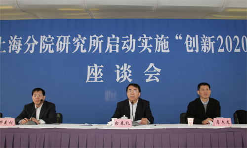 在上海分院研究所启动实施“创新2020”座谈会上,白春礼和詹文龙一行认真听取了上海分院和各所领导就如何进一步深入推进改革和发展,如何在建设创新型国家中进一步发挥中国科学院的骨干引领作用,如何启动落实“创新2020”等问题的意见和建议,并围绕一些深层次问题和大家进行了深入的交流和讨论。白春礼强调,要进一步凝练目标和方向,抓重大科技成果产出;进一步突出优势,明确研究所定位,避免同质化竞争,走出自己的特色之路;既要围绕当前的国家重大需求努力攻关,又要抓好前瞻性基础研究和学科建设;要广泛吸引各类人才,形成人才团聚效应,培养拔尖人才,依靠人才强院;要努力为科研人员创造宽松和自由的工作环境,采取有力措施保证科研人员从事科研工作的时间,帮助科研人员切实解决后顾之忧,并大力支持和培养青年科技人员,使他们能够全身心地投入到科研工作中去。