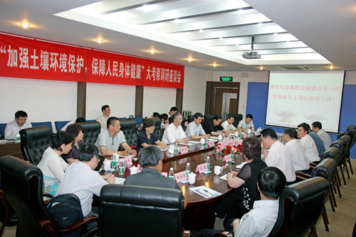 调研团首先听取了南京土壤所所长沈仁芳,研究员周东美、施卫明、陈梦舫以及环保部南京环境科学研究所研究员林玉琐关于我国土壤污染现状与治理、重金属污染防治重点与政策建议、农业面源污染、国外污染场地管理与地下水修复技术、江苏场地污染修复典型案例的专题报告。调研团就政府对企业场地污染的监管、土壤在我国环境保护规划中的地位、重金属污染防治规划中的问题、我国土壤环境保护与发达国家的差距、土壤污染损失的经济评价、地下水污染治理的成本等问题向专家进行了质询和征求建议。