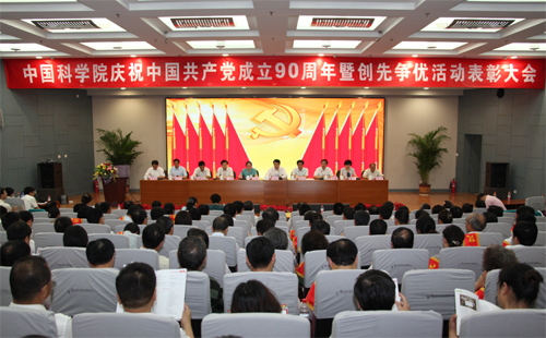 6月24日下午,中国科学院在京隆重举行庆祝中国共产党成立90周年暨创先争优活动表彰大会。中科院党组书记、院长白春礼出席会议并发表讲话,中科院党组副书记、中科院党建领导小组组长方新宣读《关于表彰中国科学院先进基层党组织、优秀共产党员和优秀党务工作者的决定》,中科院党组成员、中纪委驻院纪检组组长李志刚,中科院党建领导小组副组长王庭大以及院党建领导小组全体成员出席了会议。中国科学院党组成员、京区党委书记、中科院党建领导小组副组长何岩主持会议。