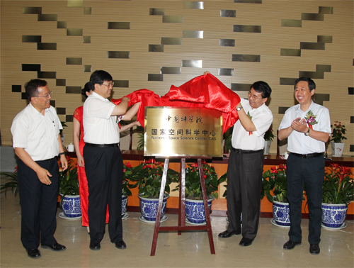 成立大会由中科院副院长阴和俊主持,中科院党组成员、副秘书长何岩宣读了中国科学院国家空间科学中心成立文件。在《走向复兴》昂扬自信的乐曲声中,白春礼为国家空间科学中心揭牌。