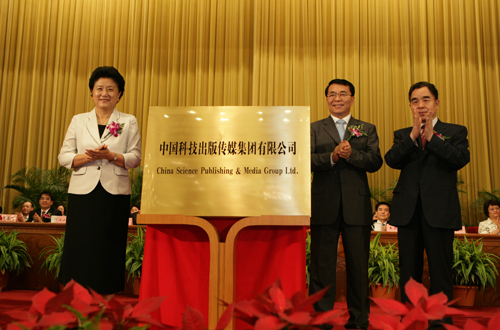 成立大会由中国科学院副书记方新主持,新闻出版总署署长柳斌杰到会祝贺并讲话,中国科学院院长白春礼代表主管部门讲话,中国科技出版传媒集团有限公司董事长王津代表新成立的集团公司发言。同时举行了“中国科技出版传媒集团有限公司”和“中国科技出版传媒股份有限公司”的揭牌仪式。