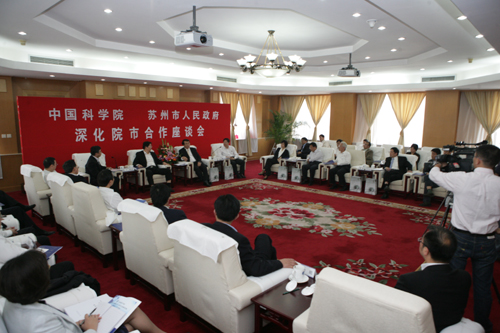 苏州市有关领导和中科院办公厅、基础科学局、生命科学与生物技术局、资源环境科学与技术局、高技术研究与发展局、院地合作局、人事教育局、南京分院、苏州纳米技术与纳米仿生研究所、苏州生物医学工程技术研究所等部门、单位负责人出席了座谈会和签约仪式。