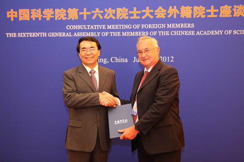 会上举行了外籍院士证书颁发仪式。白春礼为外籍院士钱煦(ShuChien)、弗朗斯瓦·马蒂(Francois Mathey)、野依良治(RyojiNoyori)、蒲慕明(Muming Poo)、罗伯塔·鲁德尼克(Roberta L. Rudnick)、罗格·欧文(Roger J. Owen)和饭岛澄男(SumioIijima)颁发了外籍院士证书。