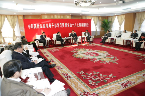 11月16日下午,中科院所局级领导干部学习贯彻党的十八大精神座谈会在北京召开。第十八届中央委员会委员,中科院院长、党组书记白春礼出席会议并发表重要讲话。中科院党组副书记、十八大代表方新,院党组成员、副秘书长、十八大代表何岩和17位所局级领导干部出席座谈会。何岩主持会议。