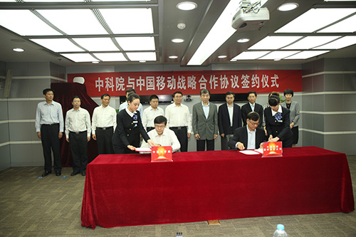 9月26日,中国科学院与中国移动通信集团公司战略合作协议签约仪式在北京举行。中科院院长白春礼、中国移动董事长奚国华出席签约仪式并讲话,中科院副院长阴和俊、中国移动总裁李跃代表双方签署战略合作框架协议,中国移动副总裁李正茂主持签约仪式。