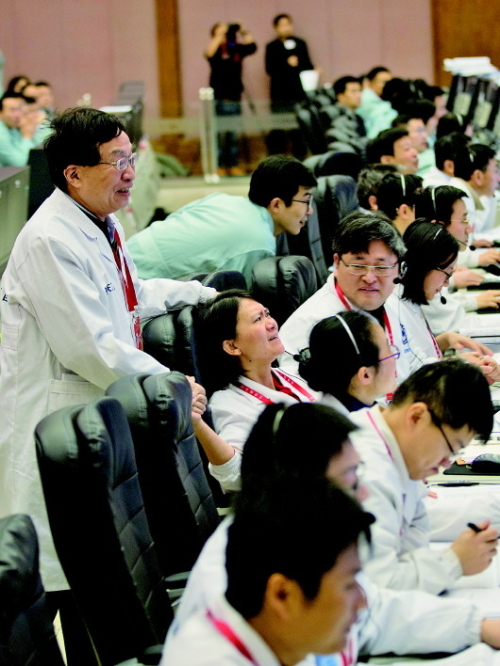 23时10分,空气凝固般寂静的几秒过后,大厅里爆发出雷鸣般的掌声,中国航天器成功实现我国首次地外天体起飞!