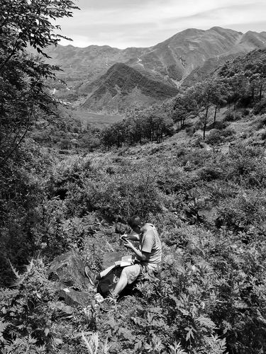 2018年,李新伟在云南昭通五寨村进行野外调查。武汉植物园供图
