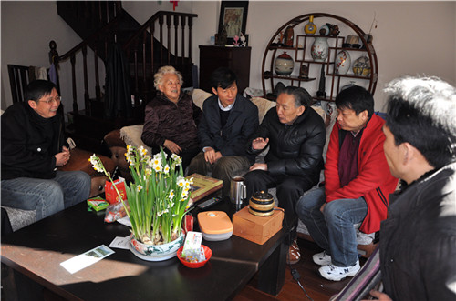 在吴征镒院士家中,所领导握着吴征镒院士的手,关切询问了院士目前的身体状况及生活起居情况,并送上节日礼物,向他及其家人表示节日的祝贺和慰问,衷心祝愿院士健康愉快。吴征镒院士很高兴所领导在百忙之中对他的看望,希望昆明植物所在几位领导的带领下继续发展壮大,同时也祝福全所职工、学生新春愉快。 |