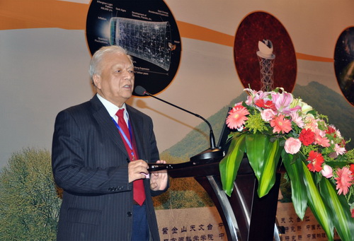 紫金山天文台台长杨戟在陆埮院士生日晚宴上发表贺词,代表紫金山天文台向陆埮院士表示诚挚的生日祝福,祝愿陆埮院士健康长寿!杨戟说,十年前,首届“天体物理与相关物理前沿研讨会”在南京召开。转眼间10年已经过去,天文学,特别是天体物理与宇宙学迎来了大发展。这些成就的背后,有一批把天文事业视为生命,兢兢业业努力工作的老科学家的身影,陆埮院士就是其中杰出的一位。