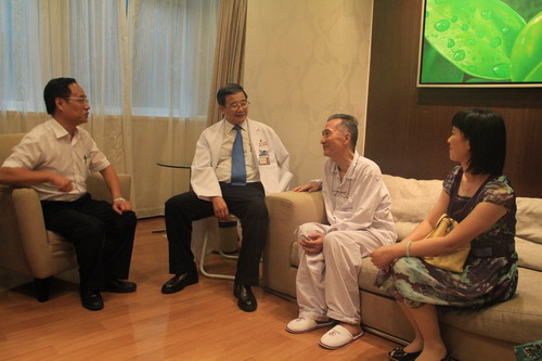 9月4日,中科院广州分院、广东省科学院党组书记、副院长郭俊等赴中山大学附属第六医院慰问住院的中科院院士、稀土材料与化学专家苏锵教授。