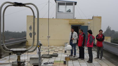 随后,石广玉一行实地考察了平凉站日产JMA-133气象雷达、714XDP双偏振多普勒雷达和LLX06b多普勒天气雷达,并详细询问了仪器的运行情况。科研人员还详细介绍了该站自主研发的、拥有自主知识产权的多种雷电监测和预警设备的性能指标及工作原理。