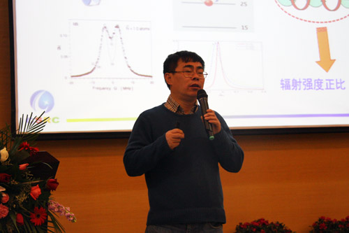 报告主要讲述了如何判断高能光子与核物质相互作用是否产生了量子相干效应,并提出了从超辐射、以及类电磁诱导透明(EIT)等现象可以作为判断高能光子与核物质产生量子相干效应的依据。孙昌璞首先从超辐射产生的条件讲起,结合穆斯堡尔谱的知识,详细讨论了硬X射线产生超辐射的条件;随后,结合国际上相关实验的最新进展,对实验结果给出了清晰的理论解释。