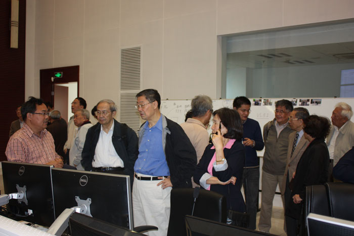 10月31日,上海分院院士中心组织在沪的部分院士来上海天文台佘山科技园区参观考察65米射电望远镜,院士们在上海天文台党委副书记、副台长侯金良,上海分院交叉学科研究中心副主任章文峻、王勇艳的陪同下来到上海65米射电望远镜现场,听取了65米基地总工程师刘庆会研究员关于65米射电望远镜的介绍,了解望远镜的性能、科学用途、主要特点、关键技术和主要指标等,并回答了大家提出的有关问题,随后院士们又来到深空探测指挥中心听取了主任设计师王伟华研究员关于指挥中心对嫦娥卫星测定轨的情况介绍,对望远镜的运作有了更深入的了解。院士们对我国自主研制的亚洲第一的上海65米射电望远镜参与国家探月工程感到无比的高兴。