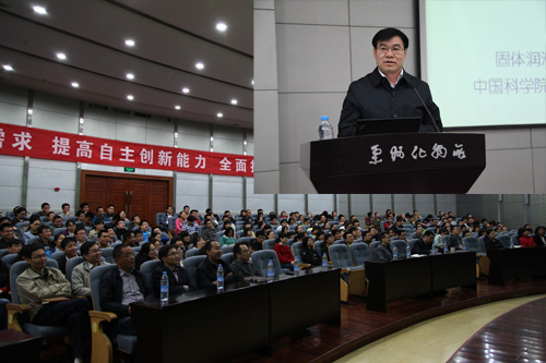 为加强科研道德和学风建设、营造良好的科研文化氛围,4月10日下午,中国科学院院士、中国科学院兰州化学物理研究所学委会副主任、学位会主席刘维民研究员应邀为全所青年职工和研究生做了题为《修养学习与科研道德》的专题报告。兰州化物所副所长、所科研道德与学风建设委员会副主任师彦平主持了报告会。所长助理、科研道德与学风建设委员会办公室主任张长春,管理部门负责人、研究生导师和全所青年职工、研究生等两百余人参加了本次报告会。