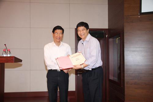 报告前林国强向大家介绍了唐本忠的履历,并将上海有机所交叉学科讲座证书颁发给唐本忠。
