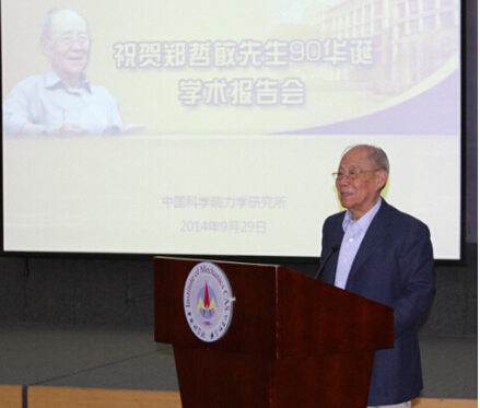 9月29日,几代力学人欢聚在中国科学院力学研究所小礼堂,共同祝贺郑哲敏先生90华诞。郑哲敏先生,李佩先生,俞鸿儒、吴承康、白以龙、李家春、王自强院士,樊菁所长、乔均录书记、黄晨光和戴兰宏副所长,相关力学专家及研究生200余人参加了学术报告会。力学所学术委员会副主任靳刚研究员、魏悦广研究员分别主持了学术报告会。