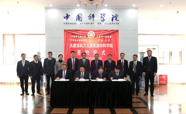 11月20日下午,中国科学院大学太原能源材料学院共建协议在北京签署。中科院党组书记、院长白春礼,山西省委常委、太原市委书记罗清宇出席签约仪式。