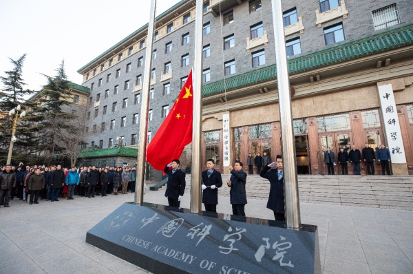 1月2日是2020年首个工作日,中国科学院隆重举行升国旗仪式,以昂扬的精神、奋进的姿态迎接新的一年。中科院院长、党组书记白春礼,党组副书记、副院长侯建国,副院长、党组成员张亚平、相里斌、李树深,党组成员、副秘书长周琪,副秘书长汪克强、李和风参加升国旗仪式。院党组成员、秘书长邓麦村主持仪式。