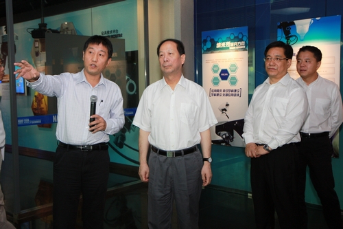 纳米技术方兴未艾,世界主要发达国家纷纷斥巨资投入优势领域研发,抢占未来科技新高地。在研究所所长杨辉陪同下,石泰峰一行参观了苏州纳米所展厅,听取了国际国内纳米技术最新发展现状、纳米所研究领域方向、纳米技术公共平台运行服务状况、人才队伍建设和成果转化等方面基本情况介绍。在科研成果展示厅,石泰峰一行听取了苏州纳米所半导体激光器等项目的研究进展及应用情况介绍。