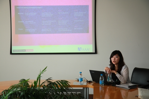 9月25日上午,美国《科学》杂志国际协作、运营与出版副总监吴若蕾来中国科学院苏州纳米技术与纳米仿生研究所交流访问并作报告。部分科研人员和学生参加交流会。