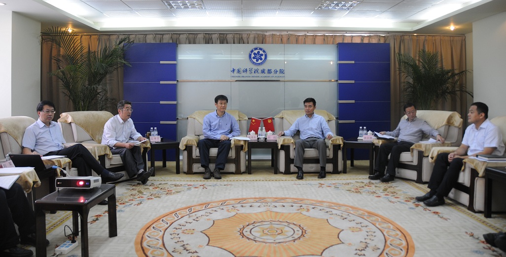 9月25日,成都市委常委、高新区党工委书记刘超,高新区管委会副主任袁宗勇一行到中国科学院成都分院调研工作,四川省政协副主席、成都分院院长张雨东,副院长陈锋参加会议。会议由党组书记、常务副院长王学定主持。