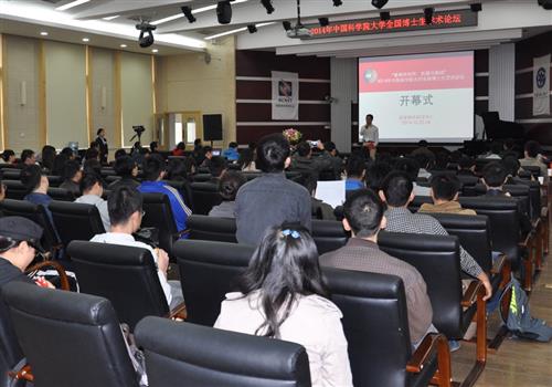 10月23日上午,2014年中国科学院大学全国博士生学术论坛在国家纳米科学中心正式拉开帷幕。开幕式于上午八点三十分在国家纳米中心南楼二层多功能厅举行,全场座无虚席,来自全国高校的200余人参加了大会。中科院化学研究所江雷院士、刘鸣华研究员、赵宇亮研究员出席了开幕式。