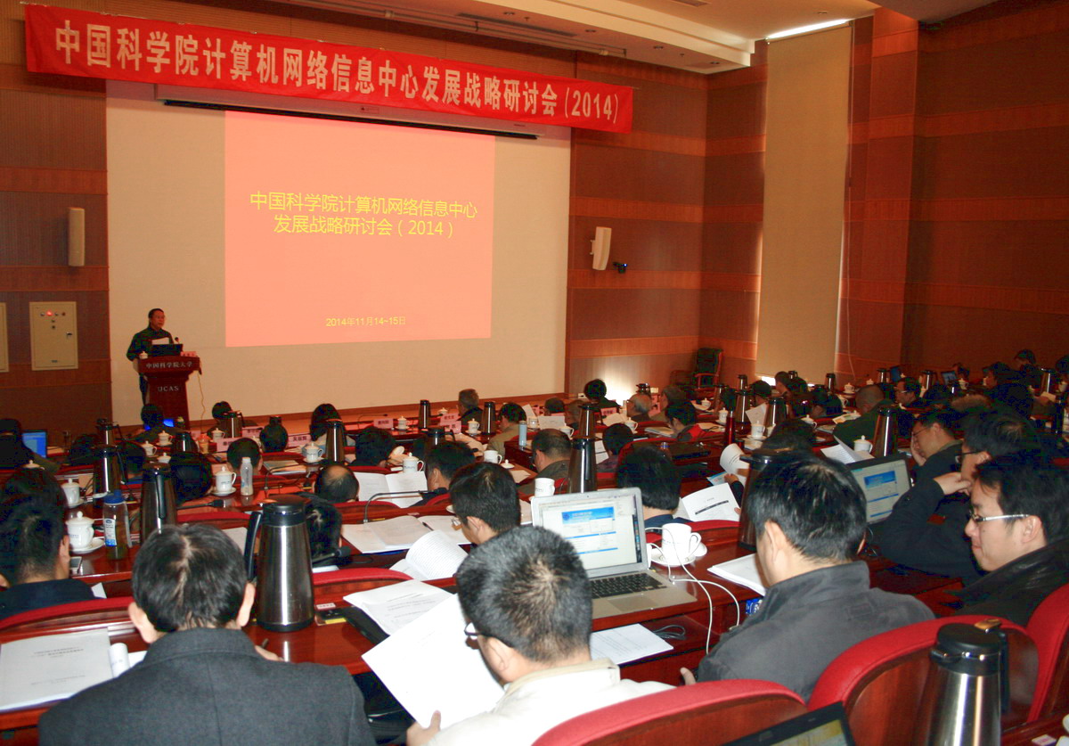 为面向全院“率先行动”计划以及“十三五”信息化发展,探讨下一步发展战略,11月14日至15日,中国科学院计算机网络信息中心组织召开了2014发展战略研讨会。中国科学院副秘书长谭铁牛、条件保障与财务局副局长曹凝、信息化工作处有关负责人、特邀专家、网络中心领导班子成员与全体骨干员工出席了会议。网络中心主任黄向阳、党委书记陈浩先后主持了会议。