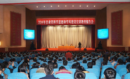12月30日,由甘肃省科学技术协会、中国科学院兰州分院、甘肃省教育厅共同举办的2014年甘肃省科学道德和学风建设报告会在甘肃省政府礼堂召开。本次报告会特邀著名基础数学家、中科院院士杨乐和板壳结构分析与应用专家、中国工程院院士刘人怀作报告。
