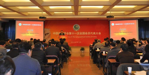 2014年12月27日至28日,中国地理学会第十一次全国代表大会在中国科学院地理科学与资源研究所召开,来自全国各地的会员代表和特邀嘉宾260余人出席了会议。中国地理学会第十届理事会理事长刘燕华致开幕词,中科院地理资源所所长葛全胜致欢迎词。中国科协党组成员、书记处书记沈爱民出席大会开幕式并发表了热情洋溢的讲话。中国地理学会第十届理事会名誉理事长、中科院院士陆大道,国际地理联合会副主席、中科院院士周成虎,中国地理学会第十届理事会副理事长、中科院院士傅伯杰、崔鹏,第五届中国地理科学成就奖获得者、中国工程院院士刘兴土,第五届中国地理科学成就奖获得者、北京师范大学邬翊光等应邀出席会议。