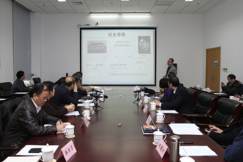2014年12月31日下午,国家自然科学基金委员会主任杨卫、副主任高瑞平等一行到中国科学院数学与系统科学研究院调研并座谈。座谈会由国家基金委数理科学部常务副主任汲培文主持。