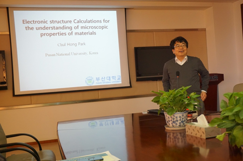 应中国科学院上海硅酸盐研究所研究员李国荣和副研究员曾江涛的邀请,韩国釜山国立大学教授Chul-Hong Park于2月29日至3月2日期间访问了上海硅酸盐所,并作了题为Electronic Structure Calculation for the Understanding of Microscopic Properties of Materials的学术报告。Park在此次报告中介绍了第一性原理计算的发展历史、理论基础及其应用,来自各中心的20余位科研人员和研究生参加了学术报告会。