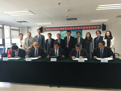 12月9日,韩国未来创造科学部、韩国科学技术研究院、科学技术政策院、研究成果实用化振兴院、延世大学(原州校区)以及首尔科学技术大学代表团一行到访中国科学院深圳先进技术研究院,韩国五方与深圳先进院签署了合作备忘录。