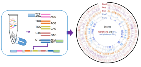 研发了串联标签测序技术,在一个测序片段(read)实现了对多达5个以上标签同时分析,解决了2b-RAD技术无法应用于双末端测序平台的局限,使得简并基因组分析成本大大降低(单标签测序成本仅为技术改进前的十分之一)。同时,该技术也首次实现了全基因组SNP分型和DNA甲基化的同步联合分析。研发的新技术为低成本、大规模开展非模式生物特别是海洋生物基因组学及分子育种学研究提供了关键技术手段,也可应用于农作物、畜牧和模式动物等,具有广阔的应用前景。