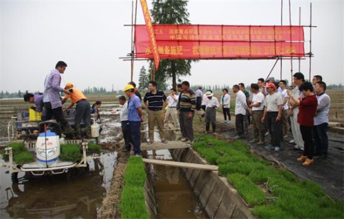 示范现场会上,南京土壤所研究员施卫明在田头深入浅出地对侧条施肥-机插秧技术进行了讲解,通过科学试验数据让农户明白该技术的效果以及能从中获得的实惠。在水稻田里,南京土壤所的科研人员与井关公司技术人员现场演示了该技术的操作细节,让农民切身体会到该技术易于操作且省工省力。通过这种方式的观摩和培训,使农户产生了极大兴趣并调动了积极性,参会的种田大户们主动提出,希望能够立刻在他们的合作社农场开展技术应用。此外,该现场会也得到了宜兴市电视台的关注,为此专门采访了施卫明等科研及管理人员,并对该活动进行了详细报道。