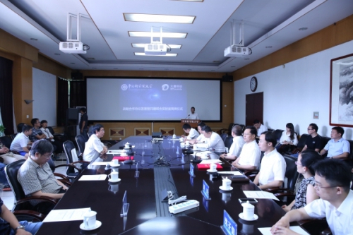 国科大副校长、中科院数学与系统科学研究院学术院长、中科院院士席南华代表国科大在战略合作协议上签字,并与马建成共同为“大数据算法及应用联合实验室”揭牌。他在致辞时表示,非常高兴能够见证国科大携手大唐移动,在产学转换、通信服务、产品提供、算法挖掘等多领域、多方面建立战略合作伙伴关系。他相信,依托国科大数学学科的科研成果和学科优势,以及大唐移动对通信市场前瞻性的预判及良好的市场能力,双方结合通信行业现实和未来需求,共同进行大数据等新技术、新课题、新应用研究与开发,必将为企业发展提供强有力的创新技术支持,同时也为学校创造更为良好的科研和育人环境。