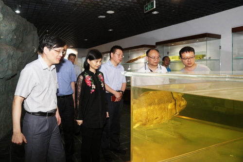 刘英姿一行参观水生生物博物馆