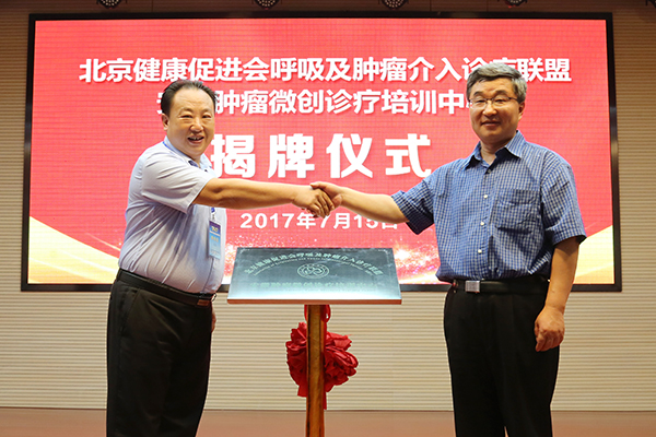 7月15日,北京健康促进会呼吸及肿瘤介入诊疗联盟(以下简称:联盟)全国首家培训中心落户中国科学院合肥肿瘤医院。联盟主席王洪武与中科院合肥肿瘤医院院长王宏志共同为“联盟安徽肿瘤微创诊疗培训中心”揭牌。