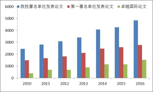 近年来,中国科大SCI论文数量持续增长。2016年度共发表SCI论文4848篇,其中第一署名单位2784篇,比去年增长了7.1%。