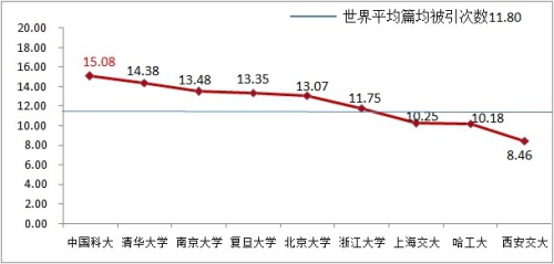C9高校2007-2016年收录SCI论文篇均被引用情况(数据来源:中国科学技术信息研究所)