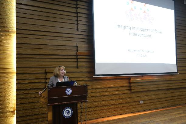 本次报告会中,Katherine W. Ferrara主要介绍了她在超声治疗领域中的科研工作,报告题目为:Imaging in support of focal interventions。基于磁共振引导聚焦超声技术,Katherine W. Ferrara创新性提出了超声微泡和免疫治疗相结合疗法,对肿瘤治疗提供了新的解决方案。同时Katherine W. Ferrara也介绍了最新阵列超声换能器的研究进展,并结合低强度超声和新型纳米颗粒,成功应用在骨科康复上。报告内容充分展示了影像及超声研究成果在再生医学和神经科学的重大应用前景。