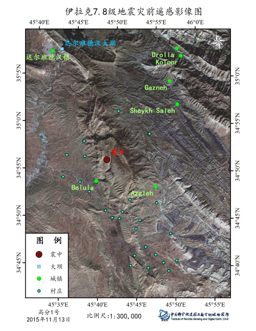利用2015年11月13日高分一号卫星多光谱遥感影像,制作完成伊拉克7.8级地震灾前遥感影像图(图1),为伊拉克7.8级地震提供空间信息支持。